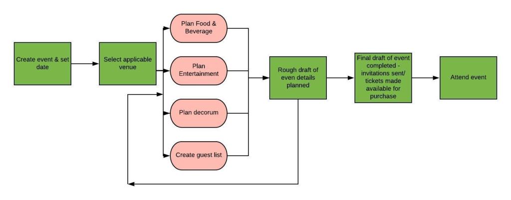 5.3. You have been asked to develop a system that will help with planning large-scale events and parties such as weddings, graduation celebrations, and birthday parties. Using an activity diagram, model the process context for such a system that shows the activities involved in planning a party (booking a venue, organizing invitations, etc.) and the system elements that might be used at each stage.