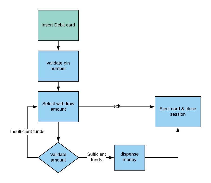 5.7. Based on your experience with a bank ATM, draw an activity diagram that models the data processing involved when a customer withdraws cash from the machine