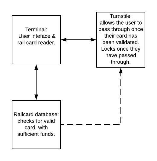 Description: A system that accepts a valid debit/credit card, accepts a specified amount of gas, and then dispenses gas.